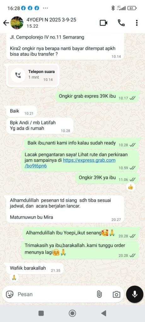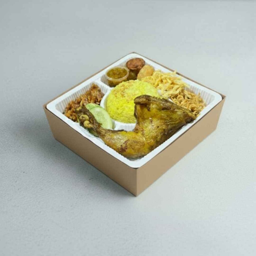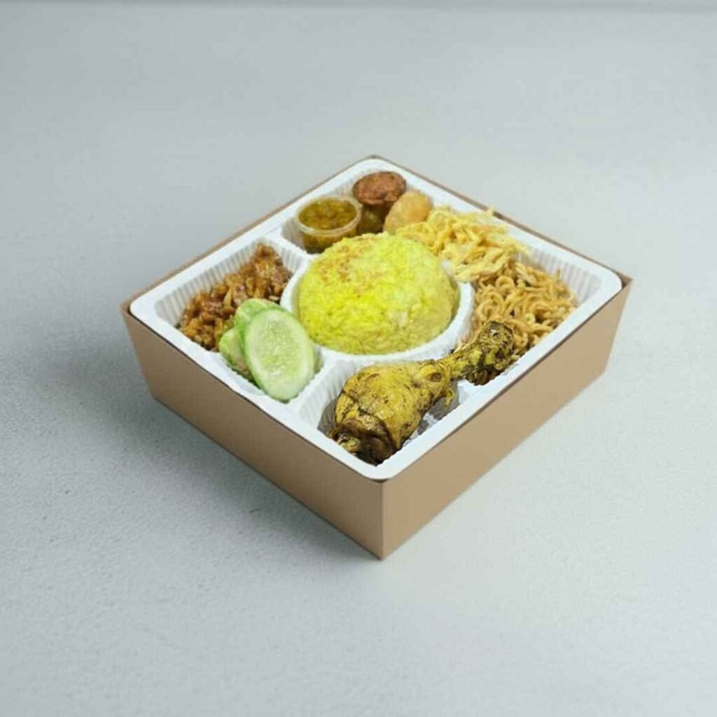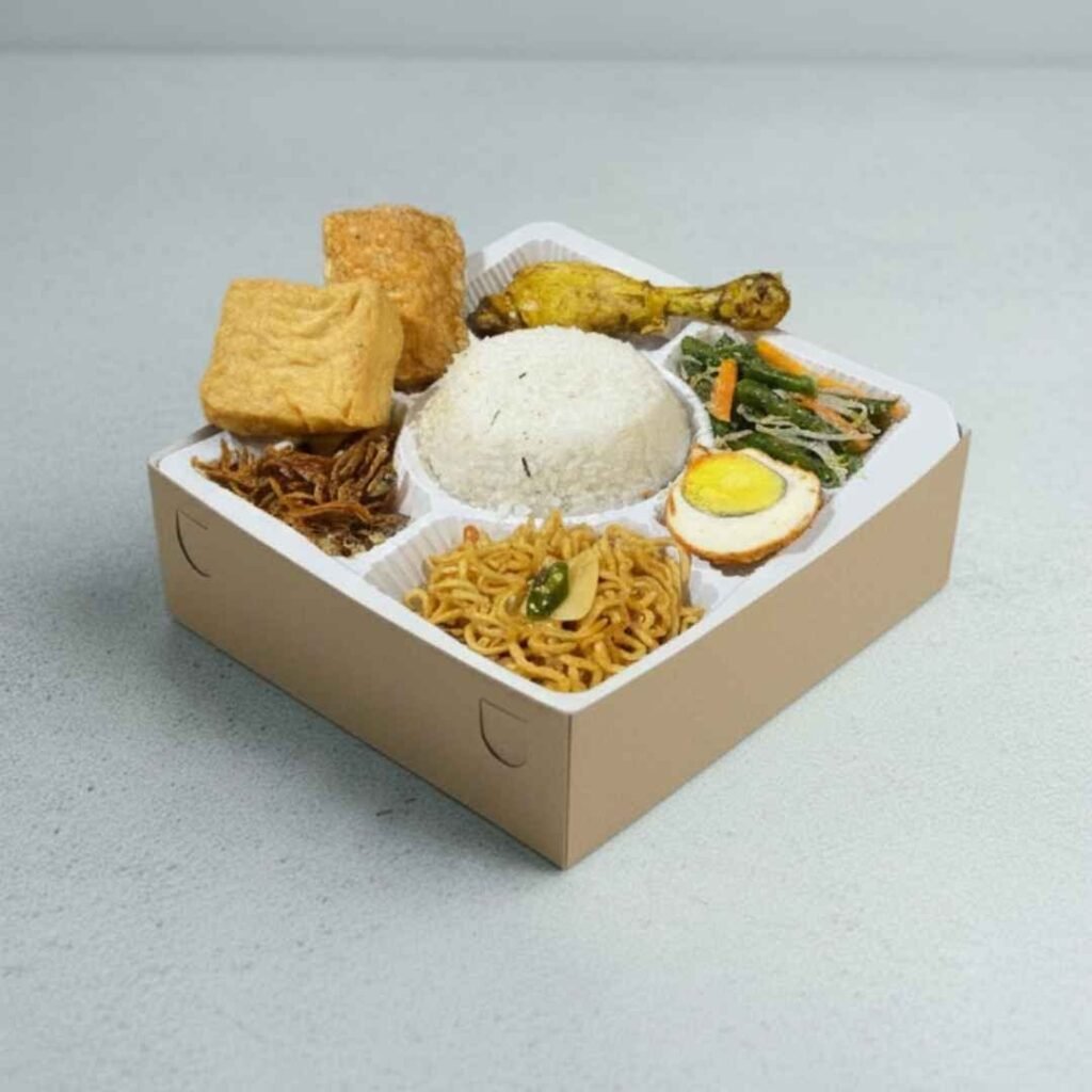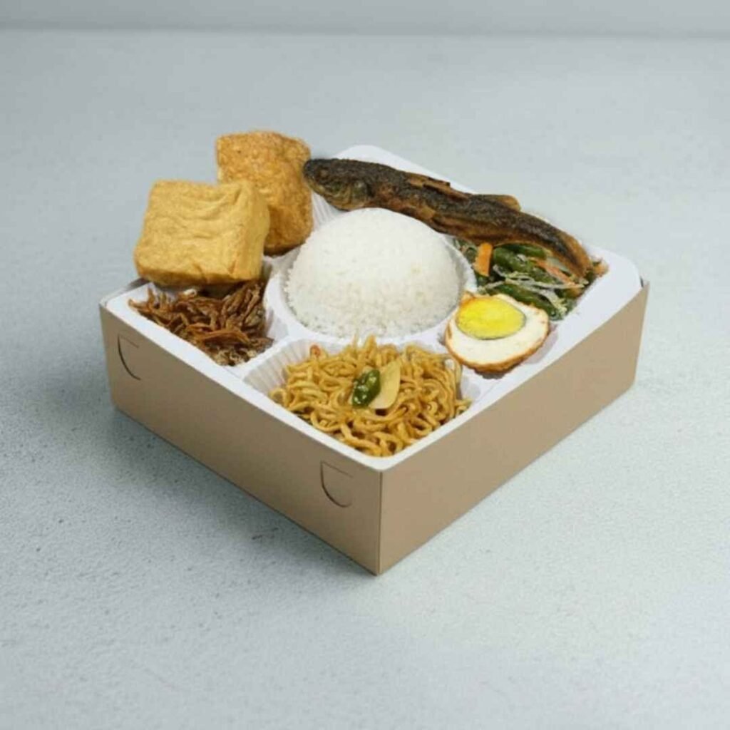 Pesan Nasi Kotak Selamatan Komplit, Enak, Higienis, Halal dan Murah Siap Antar di area Semarang. Nasi Putih, Ayam / Ikan / Daging, Mie, Telor, Gudangan, Teri / Ikan Asin, Tahu Tempe, Sambal.